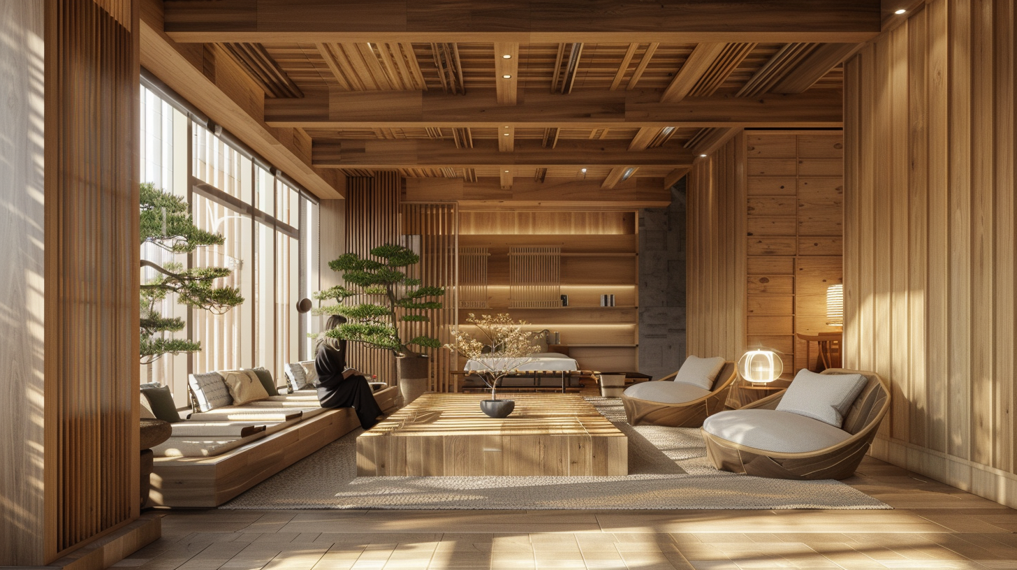 ・木の温もりを活かした内装:無垢材の床や木製家具で落ち着ける空間を演出